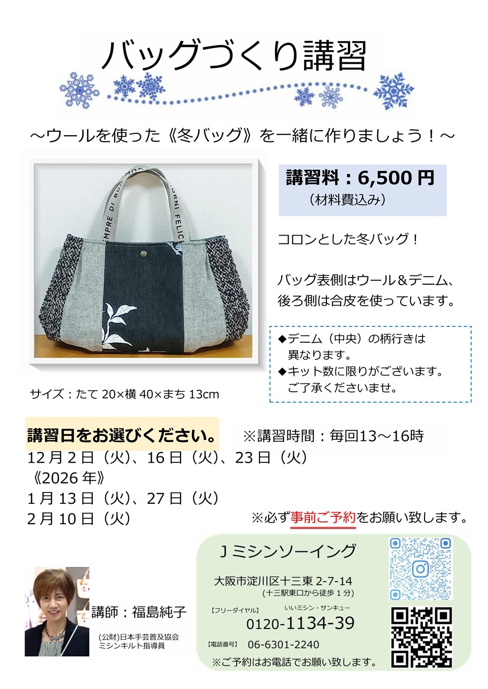福島純子先生「ウールを使った≪冬バッグ≫をつくりましょう」