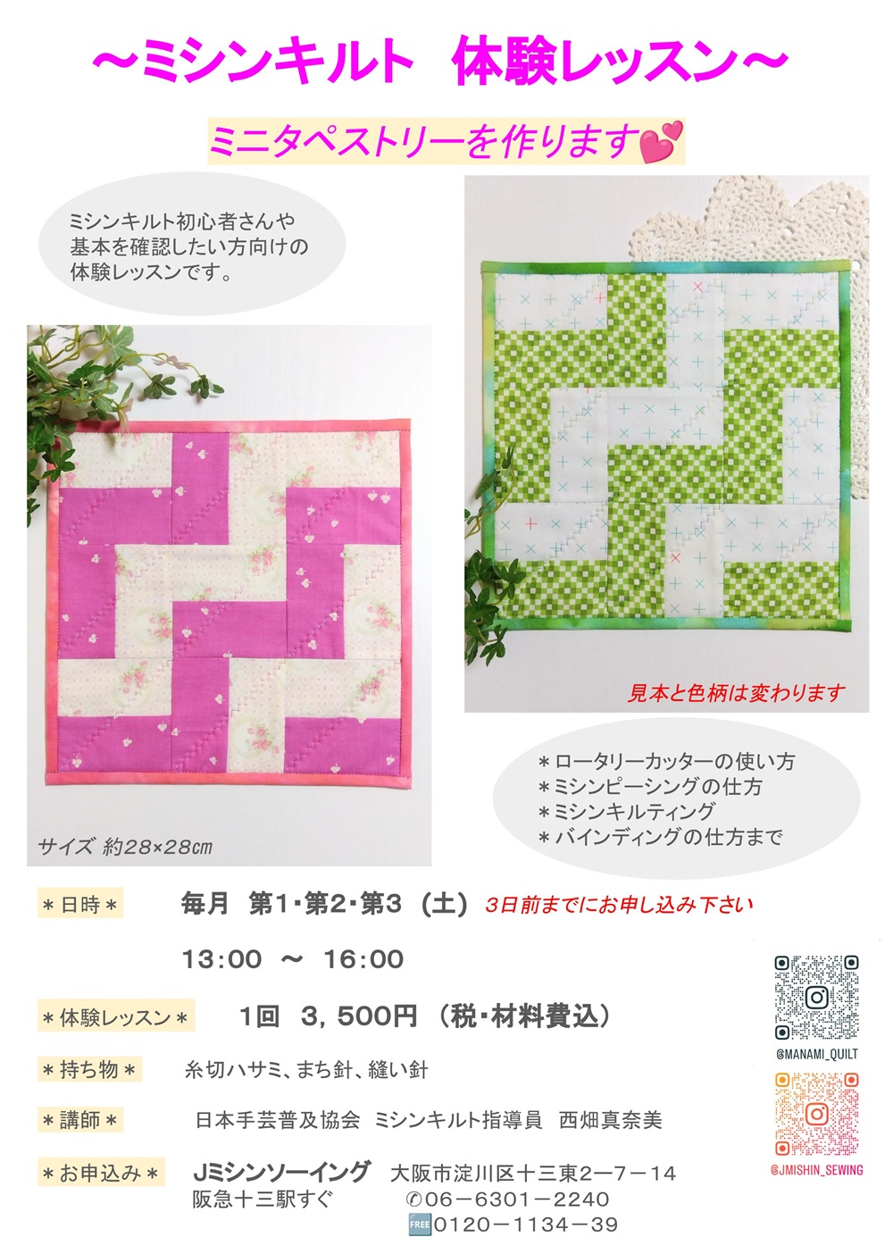 西畑真奈美先生 ~ミシンキルト 体験レッスン~ ミニタペストリーを作りましょう